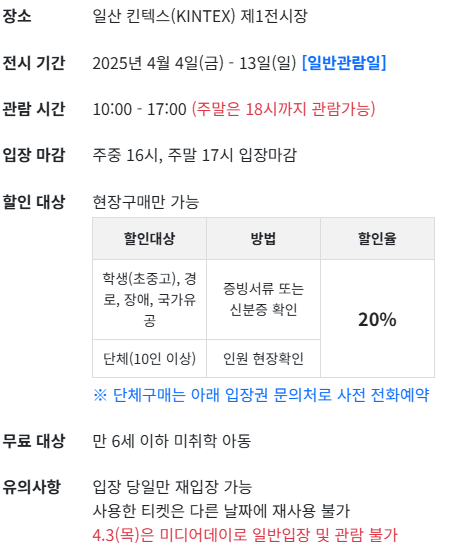해당 행사는 4월 3일(목)부터 6일(일)까지, 킨텍스 제1전시장 5홀에서 열릴 예정입니다.