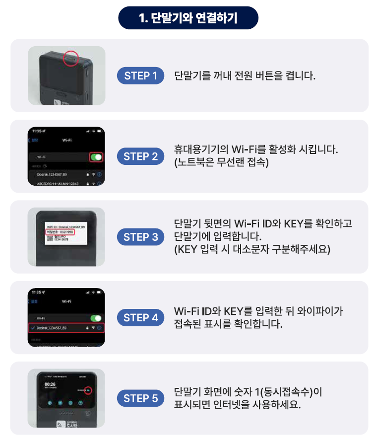 가끔 와이파이도시락을 이용 중 연결이 되지 않거나 속도가 느려지는 경우가 생길 수 있습니다. 이런 상황에서도 당황하지 마시고 아래 순서대로 점검해보세요.